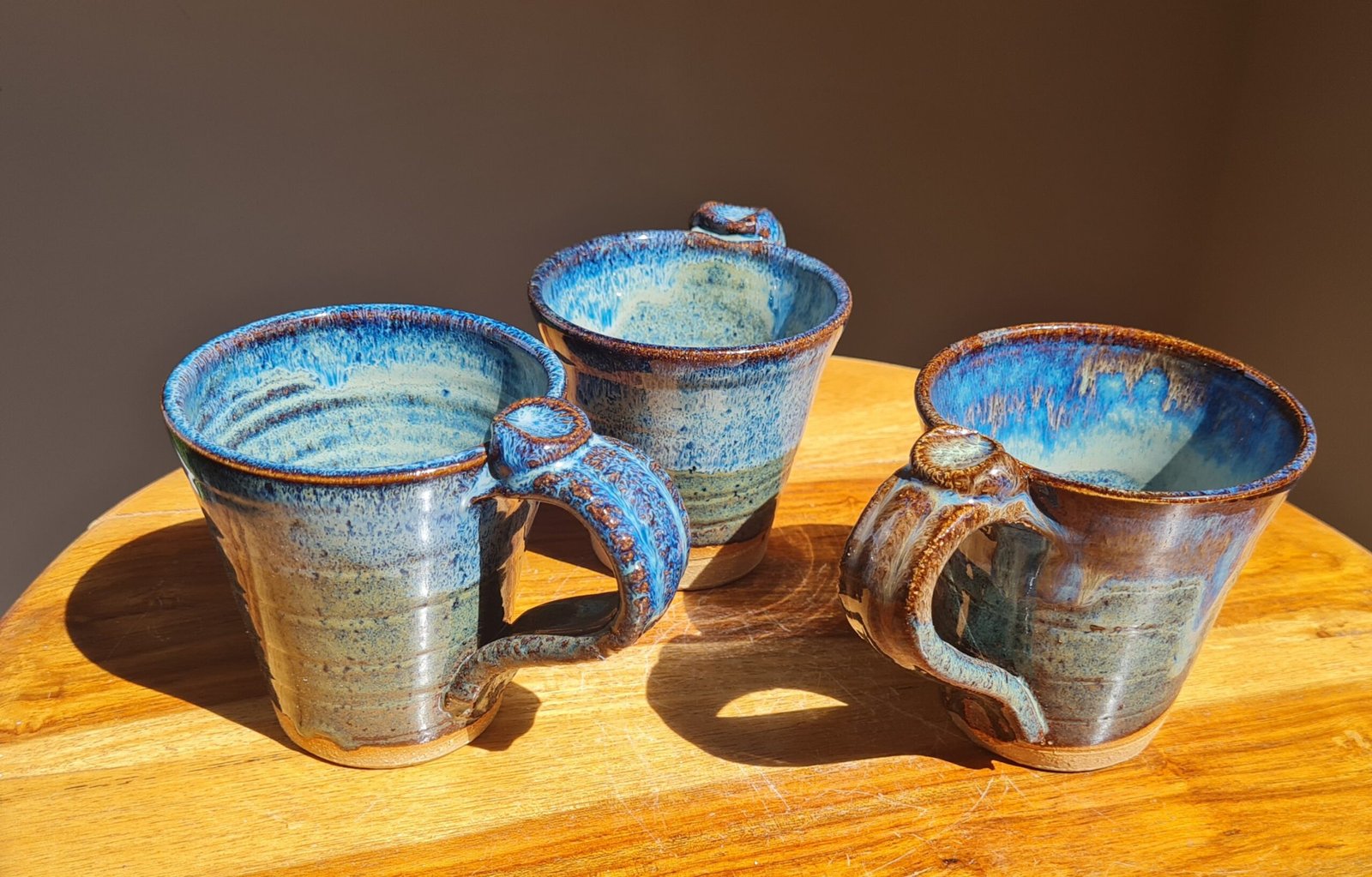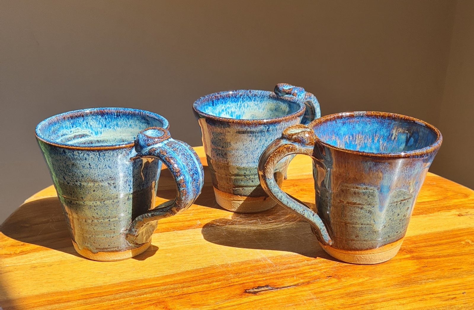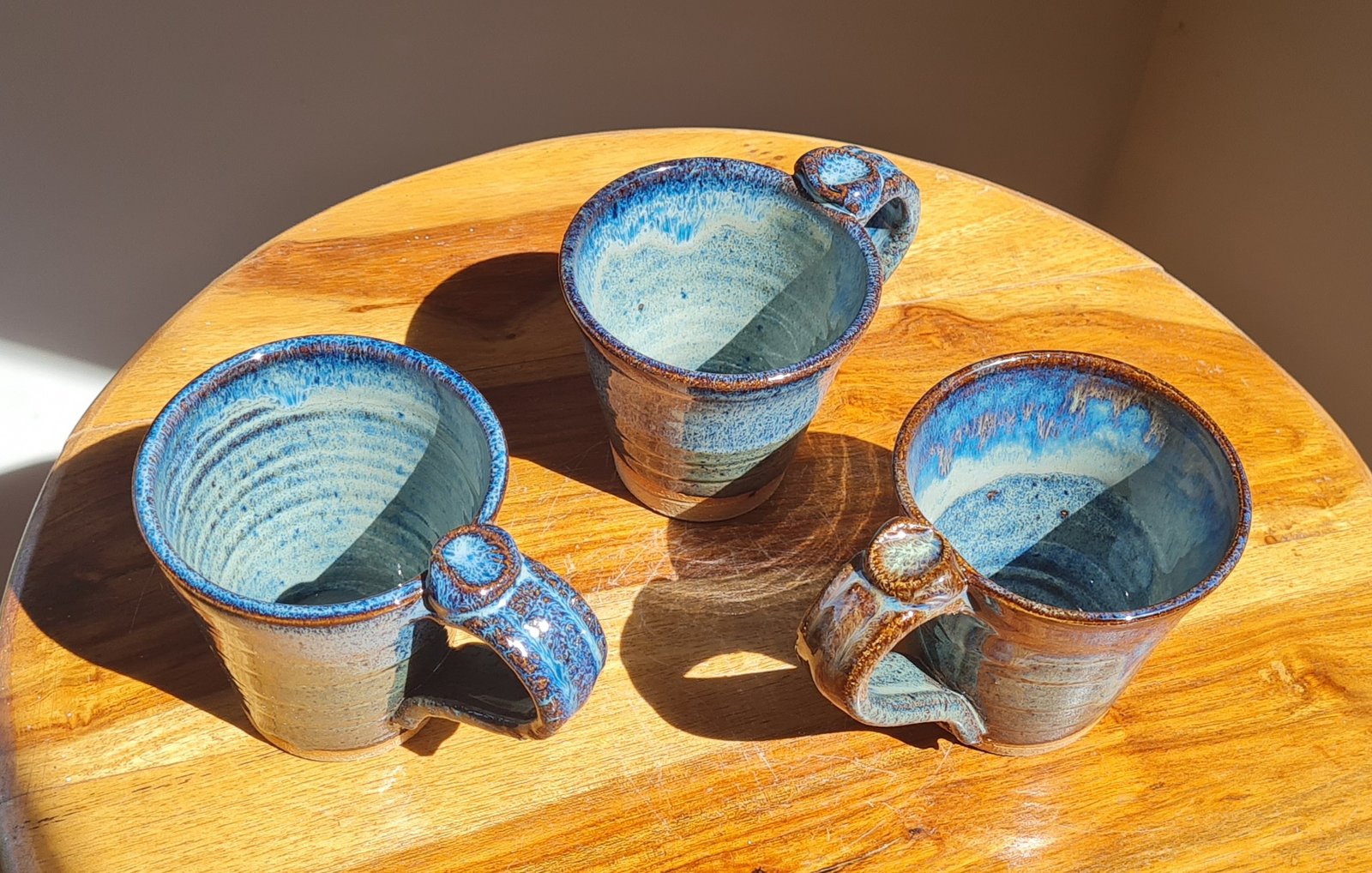 These beautiful cups have been glazed with a combination of three glazes, specially designed to interact with each other. They also have the Gower Ceramics signature cockleshell pressed thumb rest on the handle, which is ergonomic and comfortable to enjoy your favourite brew.